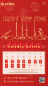 We are happy to inform you that we are going to have the Chinese New Year and our office will have the holiday from Jan 26th ~Feb 5th, and we will be back normal work on Feb 6th.